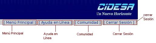 Una vez ubicados en el Menú Principal de SIGA podrá observar en la barra superior Derecha el logo de Cidesa y las opciones de:
